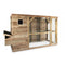 Een deel van het dak ren is, zoals gebruikelijk van gaas, maar de andere helft is overdekt. Plus, de achterwand is ook volledig van hout. Dat betekent voldoende beschutting tegen regen, wind en zon.
