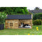 Hondenhok Naud is een hondenhok met een hoge kwaliteit. Het verblijf is volledig gemaakt van geïmpregneerd hout. Het hondenhok heeft een nachthok met de afmeting: 100 x 100 cm. Daarnaast is er een patio voor de hond waar hij heerlijk kan genieten van de buitenlucht. Het verblijf heeft een buitenmaat van 201 x 113 x 110 cm, dit is dus inclusief de uitstekende delen van het dak. Ook heeft hondenhok Naud aan de voorzijde een deur die afsluitbaar is. Dit hondenhok onderhoudsvrij en heeft een levensduur van 10 tot 15 jaar. Het dak is afgewerkt met dakleer welke zorgt voor een goede afwatering. Wilt u een mooi hondenhok in de tuin? Dan is hondenhok Naud zeker een aanrader!