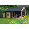 Dit prachtige hondenhok is een aanwinst voor uw viervoeter. Het hok is opgebouwd uit hoogwaardige materialen welke zonder onderhoud een levensduur bieden van 10 tot 15 jaar. Het stevige Douglas frame van het hok geeft een stijlvolle uitstraling in combinatie met de zwarte potdeksel delen waarmee het hondenhok is afgewerkt. Dit hondenhok biedt een grote binnenruimte én een ruim opgezette en overdekte veranda. Dit maakt het hondenhok ideaal voor zowel zomerdagen als de koudere winterdagen. Het nachthok is eenvoudig te bereiken via het deurtje aan de voorzijde, dit geeft ook een makkelijke toegang voor het schoonmaken van het hondenhok voor buiten. Het dak van Hondenhok Sven is voorzien van zwart dakleer wat zorgt voor een optimale afwatering. Dit hondenhok biedt uw viervoeter een veilige, comfortabele én goed beschermde plek in de tuin.