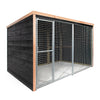 Gemakkelijke toegang en optimale afwatering: De voorzijde van de kattenren is voorzien van een stevig kennelpaneel met een deur voor moeiteloze toegang. Het schuin aflopende dak, bedekt met dakleer, zorgt voor een effectieve afwatering, waardoor het verblijf altijd droog en comfortabel blijft.