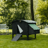 Onze verhoogde kippenhokken staan 450 mm boven de grond, waardoor ze nog gemakkelijker schoon te maken en de eieren te rapen zijn. Door deze extra ruimte kunnen je kippen ook schuilen voor slecht weer onder het kippenhok.