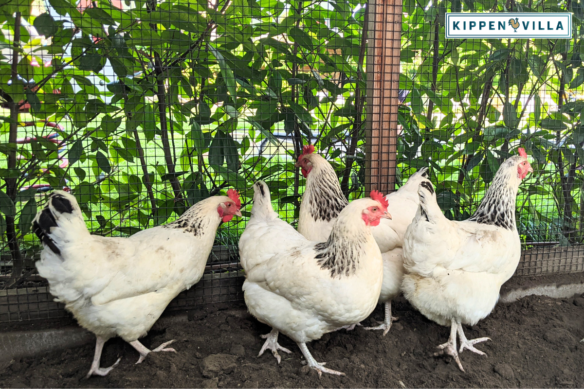 De eigenaren van Kippenvilla hebben Sussex kippen in de tuin. De kippen wonen in de Vera Deluxe, een kippenhok hooiberg.